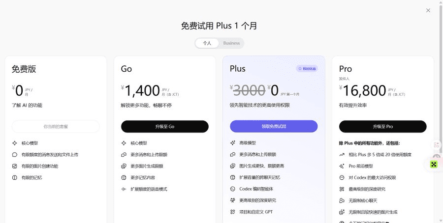 本来只是想上去试一下新功能,结果误打误撞发现现在居然还能白嫖一个月的 ChatGPT Plus,一分钱不花,而且是正规路子,不用啥黑卡代付